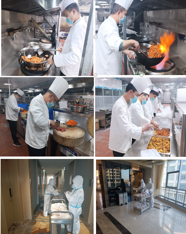 “疫情防控工作專班及高速卡口工作防疫逆行者們不顧危險奔赴一線,我們當(dāng)仁不讓為他們保障后勤!”每一位職工服從公司統(tǒng)一指揮,堅守自己的工作崗位。每天凌晨3點,廚房里就開始熱鬧起來了,切菜、掂勺、出鍋、裝盒……廚師們戴著口罩、帽子、手套,“全副武裝”地站在操作臺前,有條不紊地開始為“最美逆行者”每日三餐忙碌準(zhǔn)備,保障防疫逆行者們在酒店期間能安心食宿。